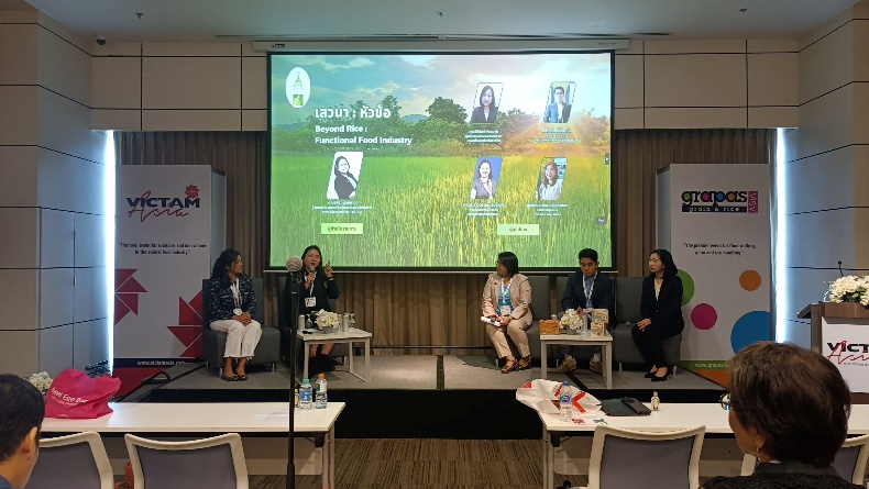 เวทีเสวนานี้ มุ่งนำเสนอศักยภาพของ ข้าวไทย และแนวทางการต่อยอดนวัตกรรมสู่ผลิตภัณฑ์มูลค่าสูง ทั้งด้านอาหารเพื่อสุขภาพและผลิตภัณฑ์ความงาม เพื่อเพิ่มมูลค่าให้กับข้าวไทย ได้เชิญวิทยากรที่รับรางวัลจากการส่งผลงานเข้าประกวดนวัตกรรมข้าวไทย นำความรู้ แนวคิด และแลกเปลี่ยนความรู้ ประสบการณ์ และมุมมอง เป็นประโยชน์ ต่อผู้เข้าร่วมงานจากภาควิชาการ ภาคอุตสาหกรรม และเครือข่ายผู้ประกอบการ เพื่อสร้างเครือข่ายความร่วมมือด้านนวัตกรรมข้าวไทย