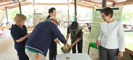 มูลนิธิข้าวไทย ในพระบรมราชูปถัมภ์ โดย ดร.สุเมธ ตันติเวชกุล ประธานกรรมการมูลนิธิฯ และคุณดรุณี เอ็ดเวิร์ดส เลขาธิการมูลนิธิฯ นำคณะกรรมการฯ เยี่ยมชมศึกษาดูงาน ณ สวนสมเด็จพระศรีนครินทร์ฯ จ.เพชรบุรี ในช่วงเช้าวันที่ 27 มีนาคม 2569 โดยได้ชมวีดิทัศน์แนะนำโครงการฯ และร่วมกิจกรรมโครงการปลูกป่าทางไกล รวมทั้งทำกิจกรรมทำลูกประคบและทำยาหม่อง